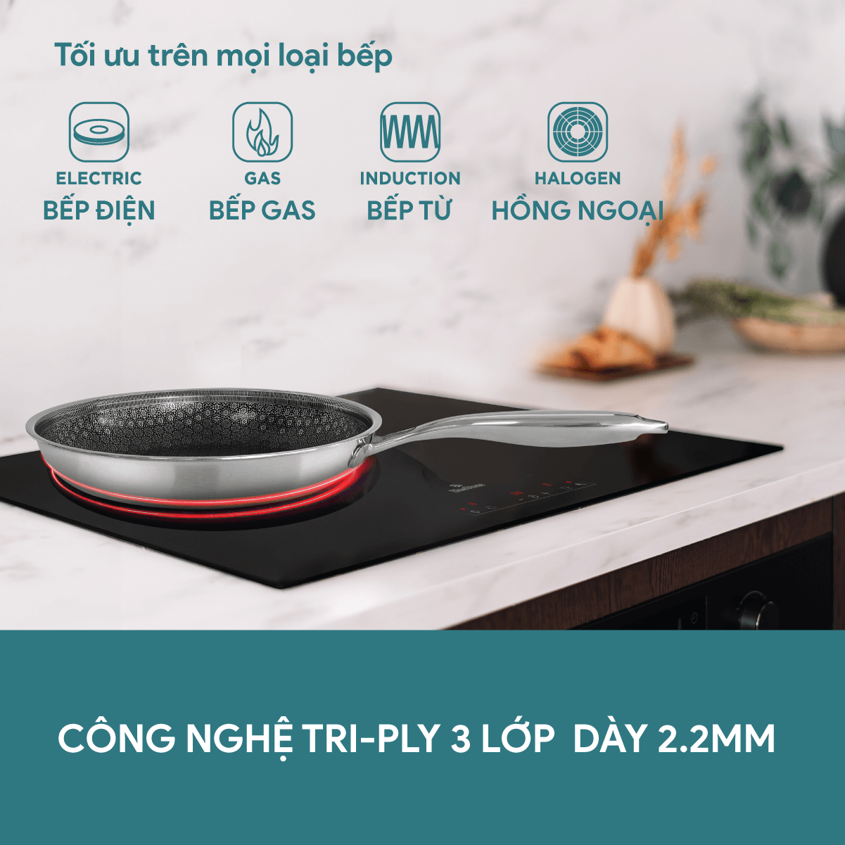 Chảo inox Tri-Ply 3 Lớp – Dày 2.2mm