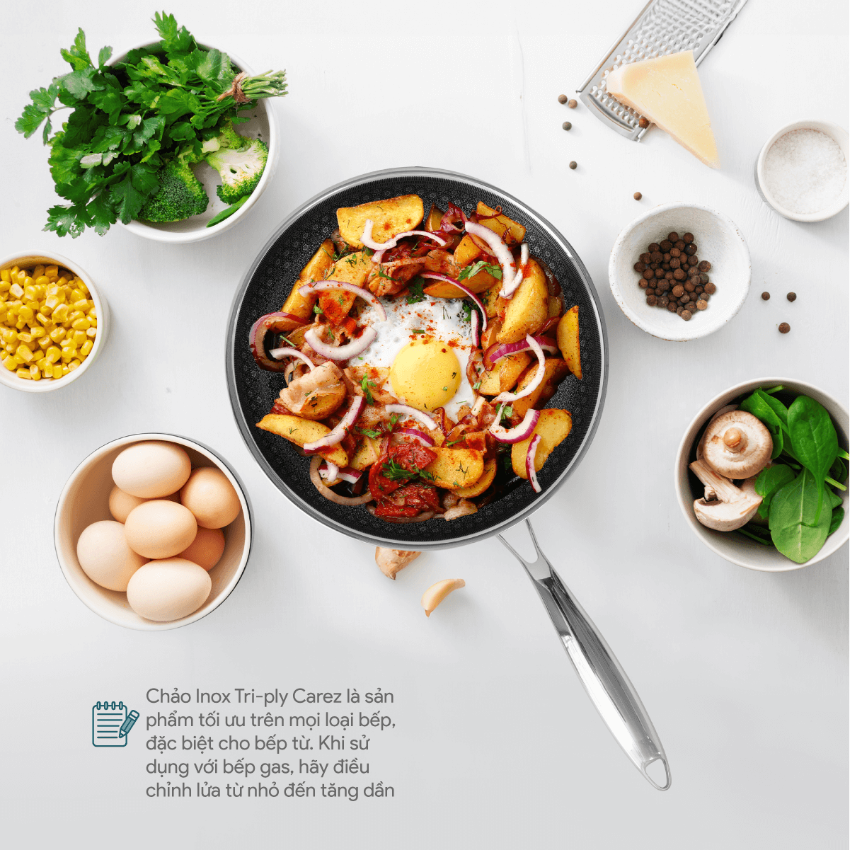 Chảo inox tri-ply Carez FPC785SI26SN được tối ưu trên mọi loại bếp đều có thể sử dụng, đặc biệt hoạt động tốt trên bếp từ, ngoài ra có thể dùng cho bếp điện, bếp hồng ngoại, và bếp gas. Lưu ý, khi sử dụng trên bếp gas, hãy điều chỉnh từ lửa nhỏ đến tăng dần để chảo được hoạt động tốt hơn.