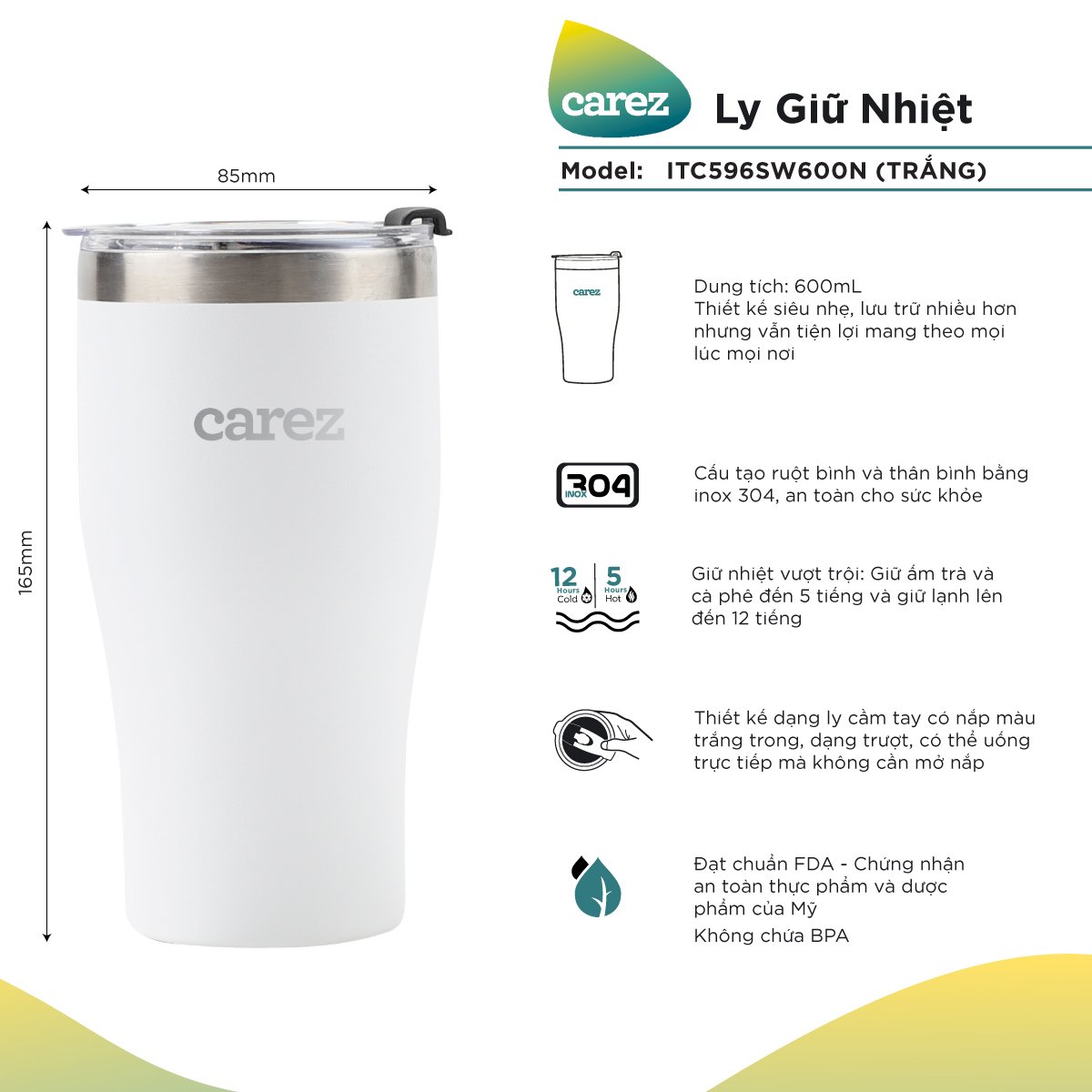 Ly Giữ Nhiệt Carez ITC596 600ml